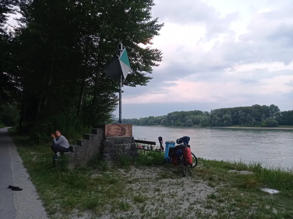 Vlak voor zonsondergang nog enkele km’s Eef op sleeptouw nemen tot we terug aan de Donau zijn. Soepje eten, tent naast het gerstenveld planten en knarren maar.