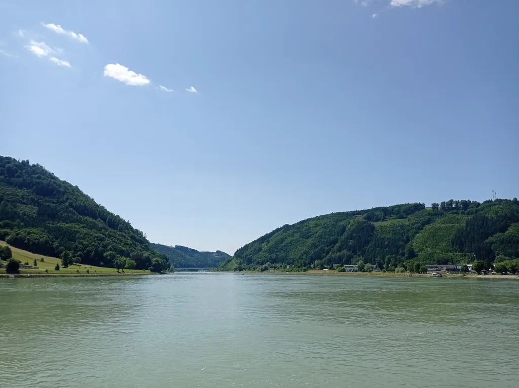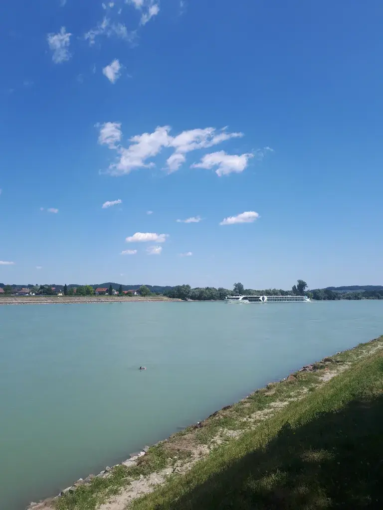 Vroeg op de been. We doen inkopen in Grein a/d Donau. Ontbijten met zicht op de jachthaven en campingvolk aanstaren terwijl ze af en aan lopen. We maken van de ochtenzon gebruik om de tent te laten drogen. Alte man in rolwagen waagt zich, licht overmoedig, op de zeer steile boogbrug. Net voor het falikant misgaat, schiet een alerte Eva te hulp. Een “danke” kan er amper van af, ‘da is ne fiere mens he’.