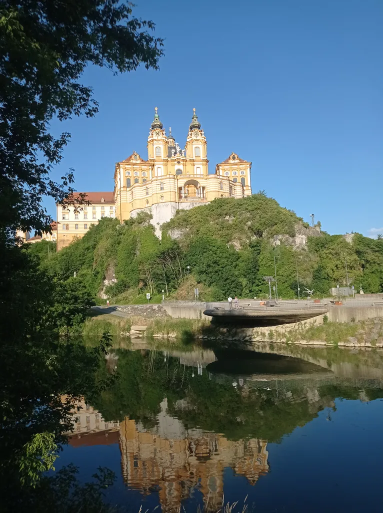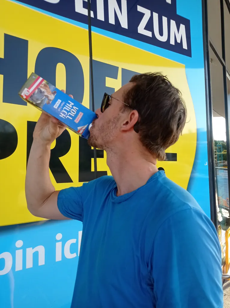 Voorbij Ybbs en dan richting Melk, maar eerst passeren we langs de “Hafenwirt” in Am Rechen. Aan dit gezappig barretje voelt Mathi het, dat wil maar 1 ding zeggen: remmen dicht en terrasje doen. Hij wordt door de enige echte UnoPri ingemaakt met Uno Flip. Na negen kilometer heeft dat VergeetPrinsesje door dat haar powerbank nog ligt op te laden aan de toog. Na wat vloeken laadt Mathi de fietstassen af, die Eef bewaakt tijdens haar rustmoment. Mathi rijdt de tijdrit van zijn leven, van het Kraftwerk van Melk tot aan de Hafenwirt en terug. 18 km in minder dan 45 minuten en hij is terug met haar dikke batterij. Een uur en veel zweet kwijt en zand erover. Prima extra training hoor.