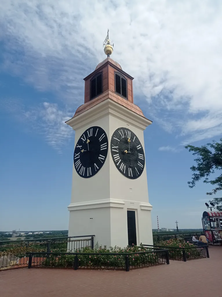 We halen alles uit het appartementje en slapen dus eens echt uit, nemen nog een goed douchke, ontbijten en pakken rustig de fietstassen in. We checken uit op het laatst mogelijke moment. Buiten is het al wel warm maar het is nog bewolkt en dus niet zo’n scorcher als de vorige dagen. We rijden de stad uit over de in 2005 herbouwde Varadinbrug. De vorige versie werd in 1999 door de Navo naar de bodem van de Dunav gebombardeerd. Tot 2005 lag hier een drijvende pontonbrug. Voor we Novi Sad echt kunnen verlaten moeten we op rechteroever natuurlijk nog het fort Petrovaradin bezoeken. Waar we een knap zicht over de stad hebben. We zien in het fort dat de opbouw voor het Exit festival, dat daar het volgende weekend plaats zal vinden, in volle gang is. Dat gaat just wel of just niet afgeraken.